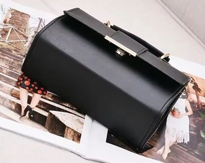 Women's shoulder bag in modern black for every occasion. This rectangular bag with a matte finish and gold-tone clasp is suitable for both work and leisure activities. The faux leather handbag features a black polyester lining, top handles, and a medium size. A stylish accessory for the modern woman. Size: 20*8*15cm